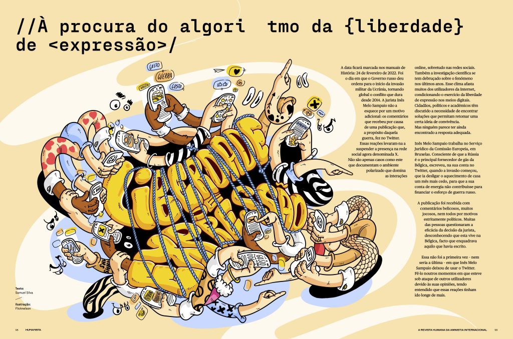 Esta nova edição fala sobre a liberdade de expressão e manifestação, num período emblemático para Portugal, que comemora os 50 anos do 25 de Abril. A Amnistia Internacional – Portugal apresenta os primeiros resultados de uma investigação e de um inquérito sobre a liberdade de manifestação, este último feito em parceria com a Universidade Católica Portuguesa, numa edição que conta com uma ilustrações de Hugo Van Der Ding, os testemunhos de Sérgio Godinho, Miguel Esteves Cardoso, Ai Weiwei, Maria Teresa Horta, Simone de Oliveira e Edson Athayde, e um portefólio do fotógrafo Marques Valentim, dedicado ao 25 de Abril.