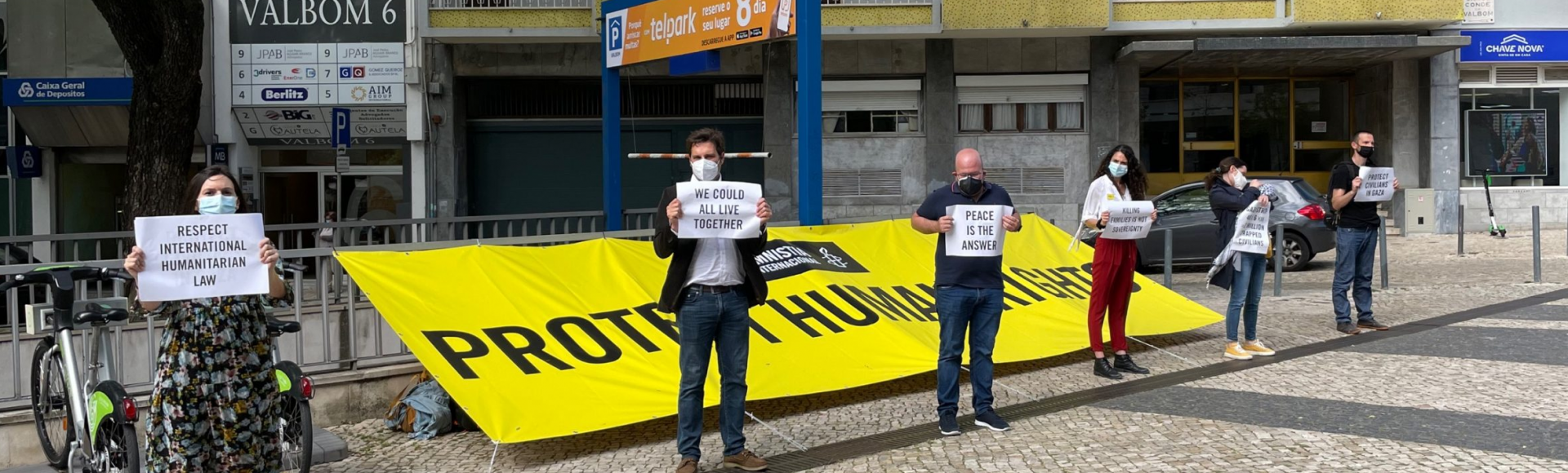 A Amnistia Internacional realizou hoje, dia 18 de maio de 2021, uma ação de rua ao lado da Embaixada de Israel, apelando ao fim do ciclo de violações de direitos humanos que têm marcado os recentes ataques em Israel e nos Territórios Palestinianos Ocupados. A organização marca assim mais uma forma de ação perante a atual aniquilação do direito humanitário internacional, e situações em que estes ataques podem constar como crimes de guerra e crimes contra a humanidade.