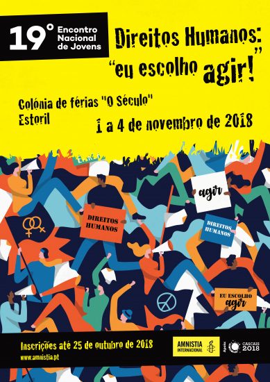 Agir pelos direitos humanos é o mote do 19º Encontro Nacional de Jovens que a Amnistia Internacional vai realizar de 1 a 4 de novembro de 2018, no Estoril. A iniciativa conta com o apoio da Câmara Municipal de Cascais no âmbito do programa Cascais 2018 – Capital Europeia da Juventude.